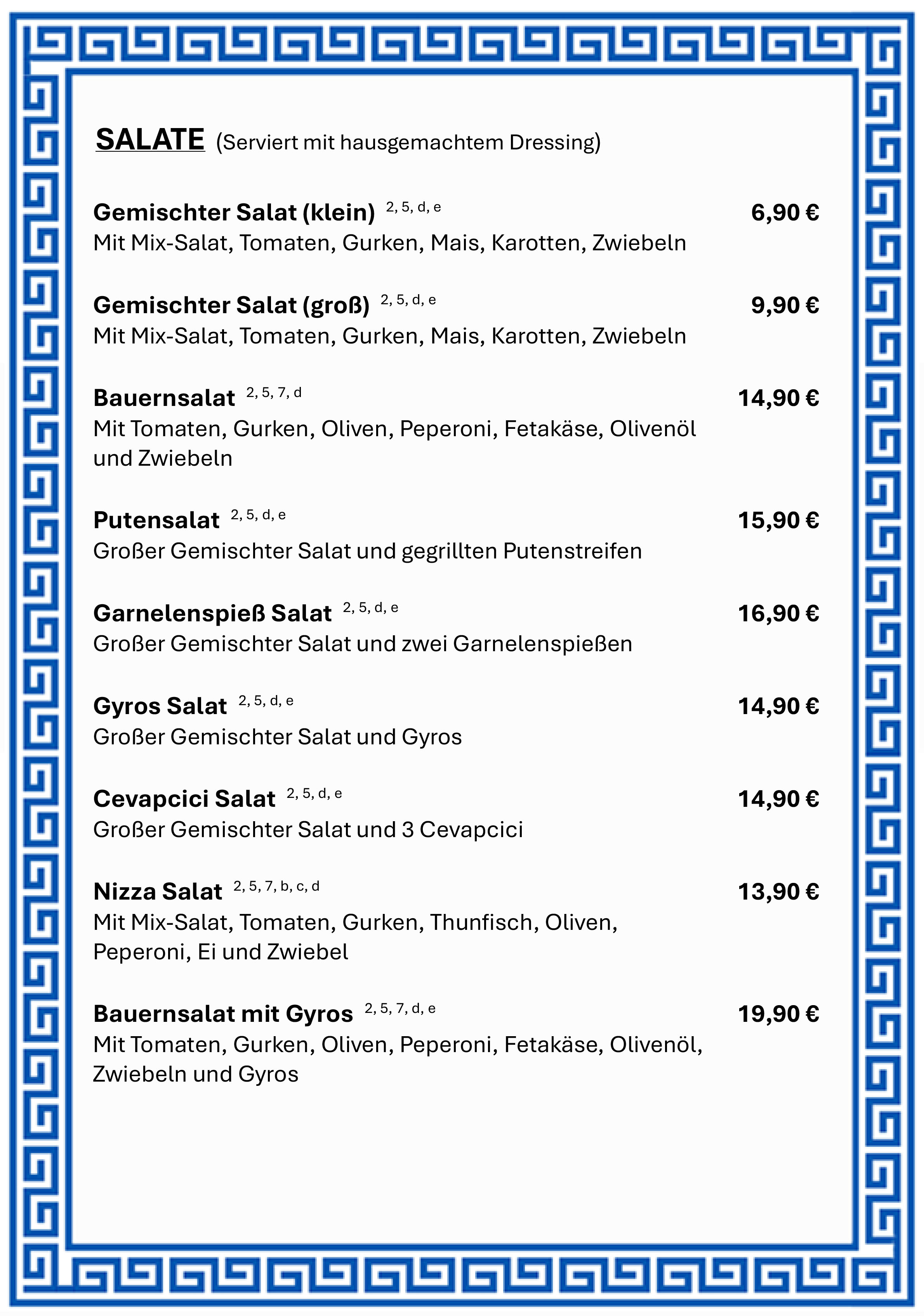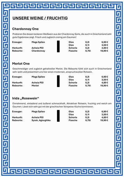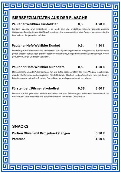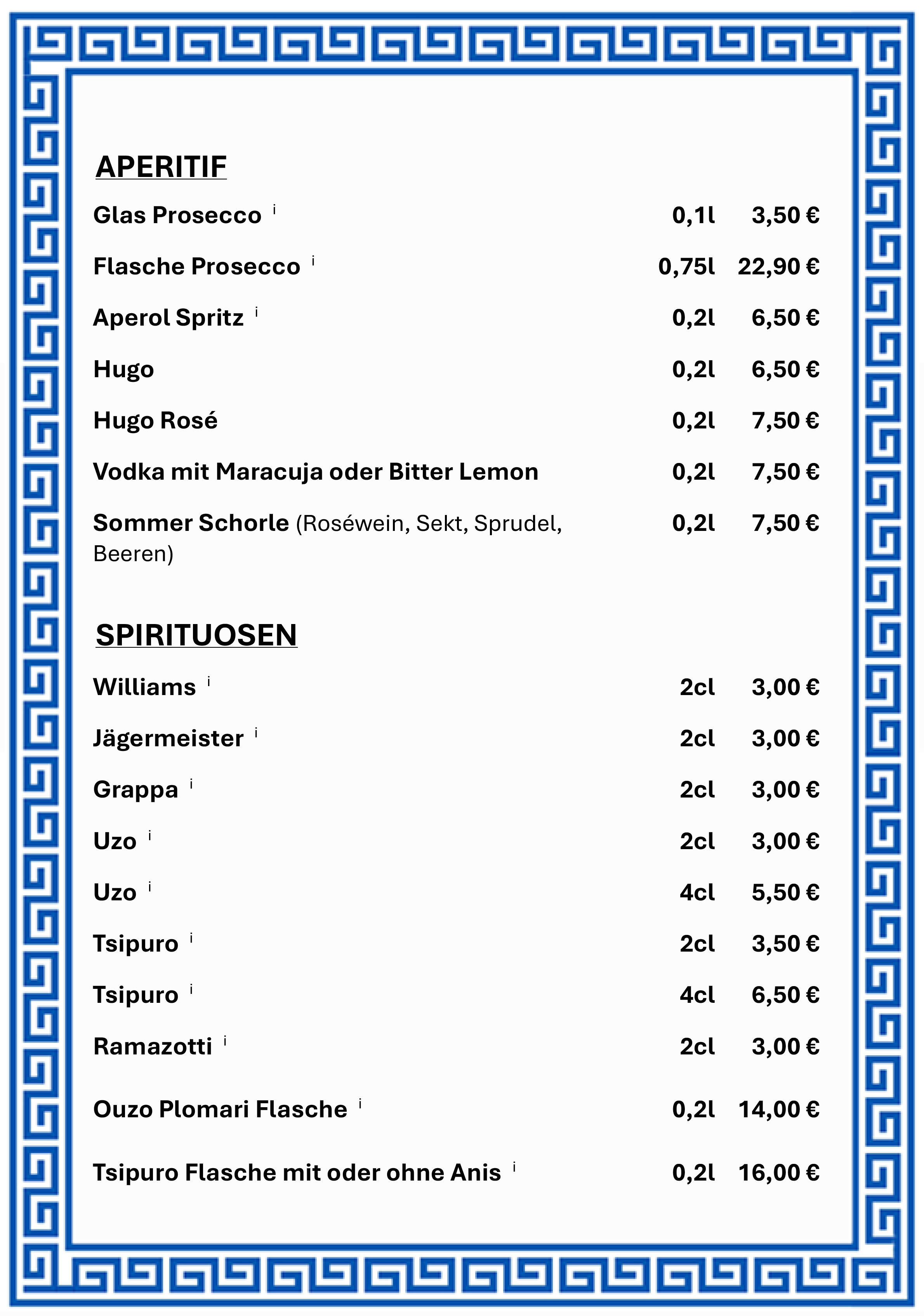 Bitte beachten Sie, dass es bestimmte Speisen nur auf Vorbestellung gibt, z.B. Fischplatte, Sardellen oder Rotbarbe. Bitte setzen Sie sich diesbezüglich vorab mit uns in Verbindung.